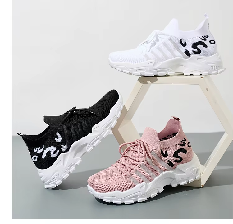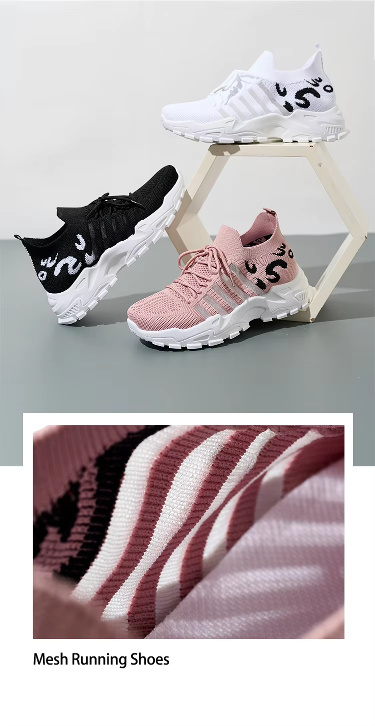 BAIRUILUN Own Brand Knit Running Shoes Women's Breathable Walking Shoes Mesh Non Slip Gym Sports Casual Fashion Sneakers