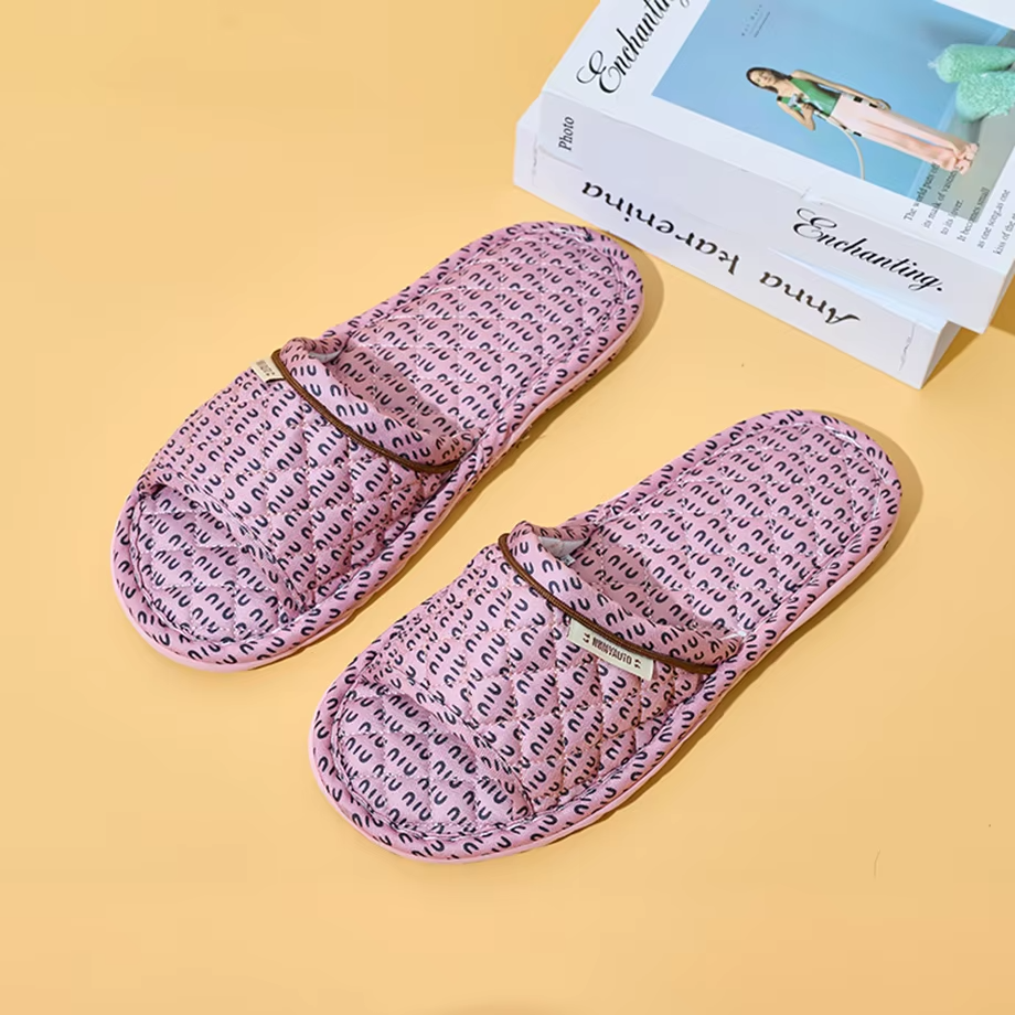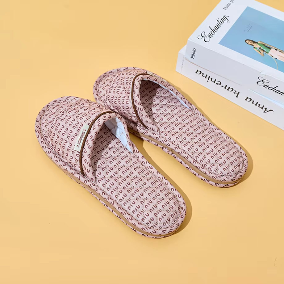 Factory Custom Minimalist Printed Fabric Slippers All-Season Indoor Couples' Soft-Sole Silent Slippers