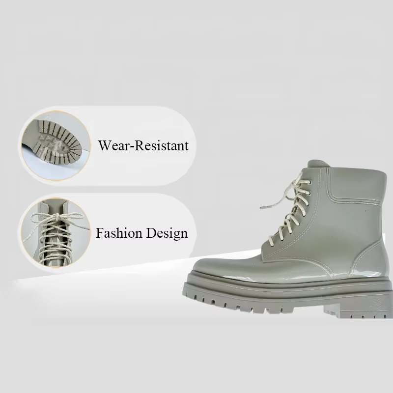 • Fashion Lightweight Rain Boots With LACES Non-slip Waterproof Walking Garden Women's Warm Mid-low Top Rain Boots