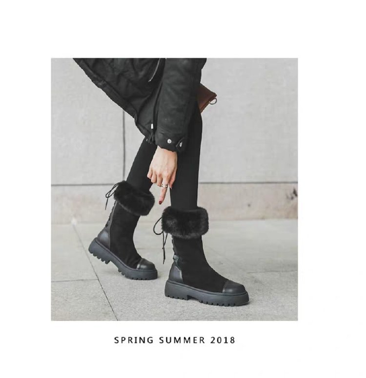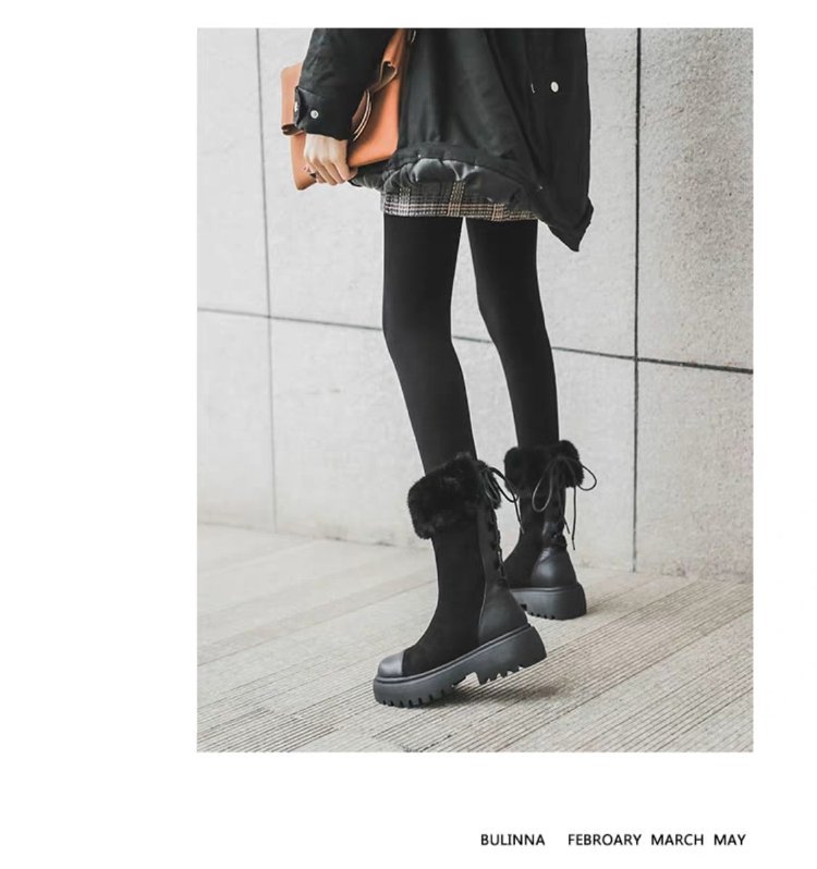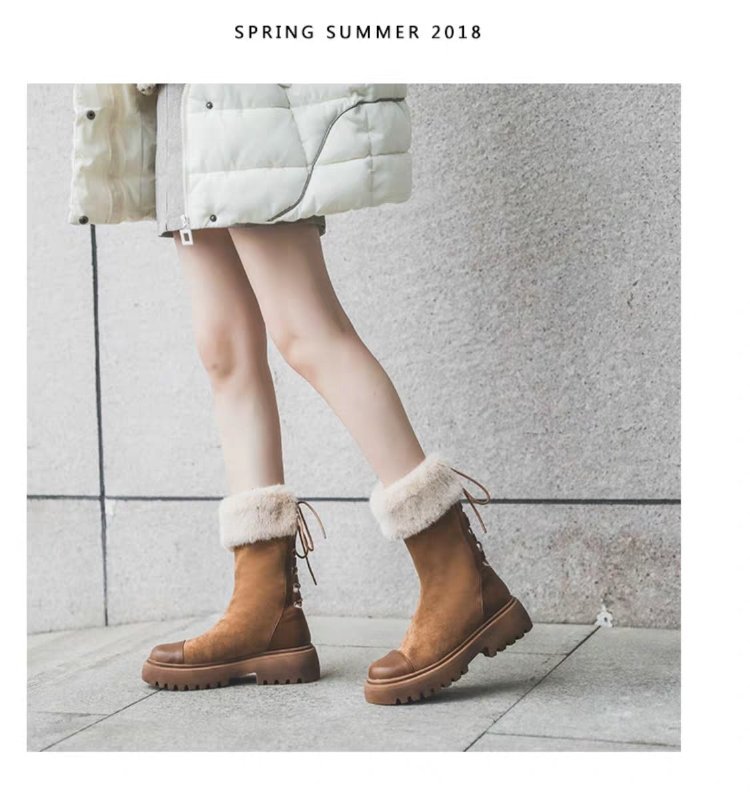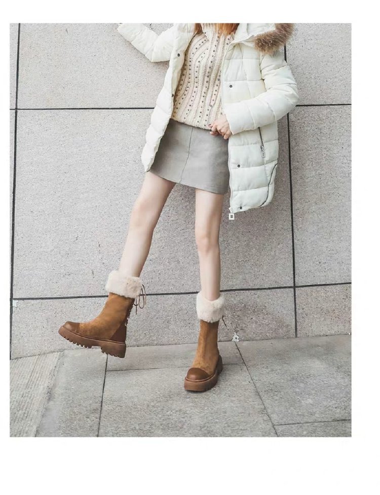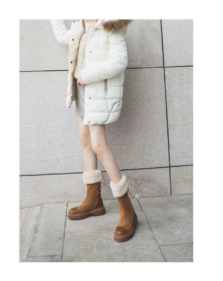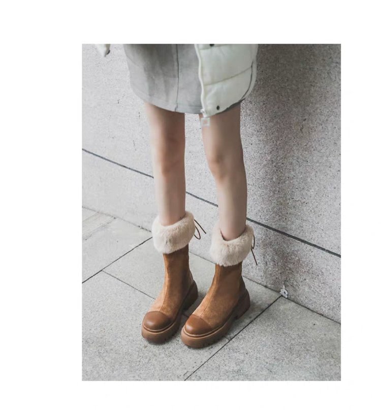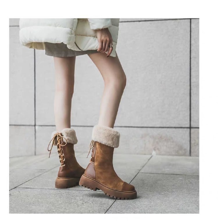 New winter Europe style mid length women' s snow boots thick soled lace up thickened plush snow boots for women