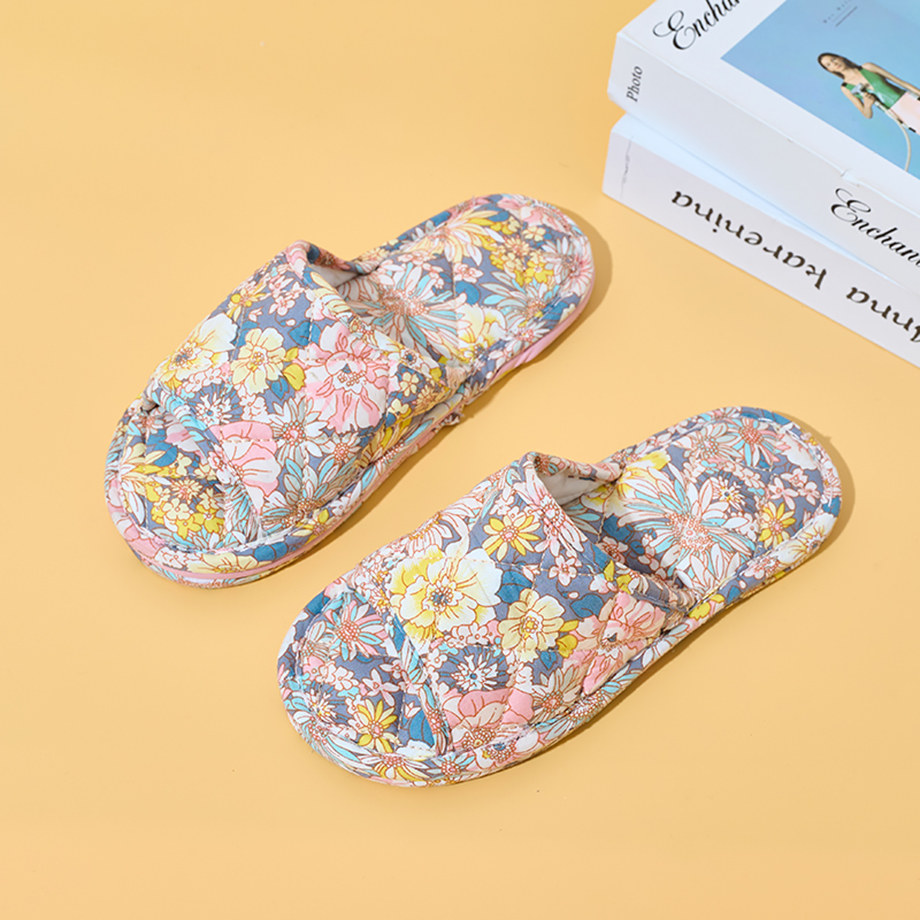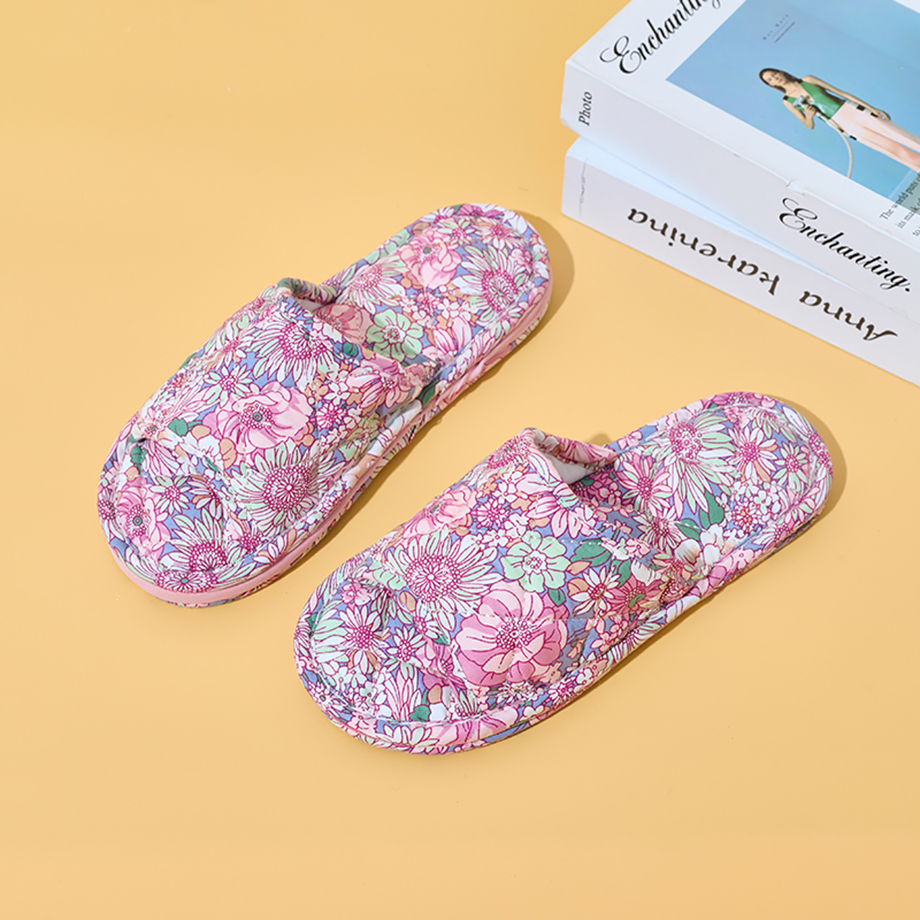 Ultralight Soft Fabric Cloth Sole Wooden Floor Slippers Men and Women Summer Mute Indoor Florals Soft Slippers
