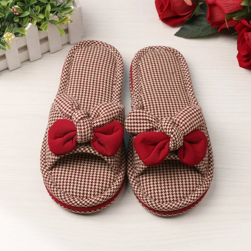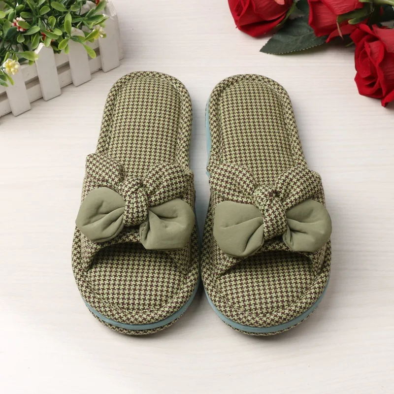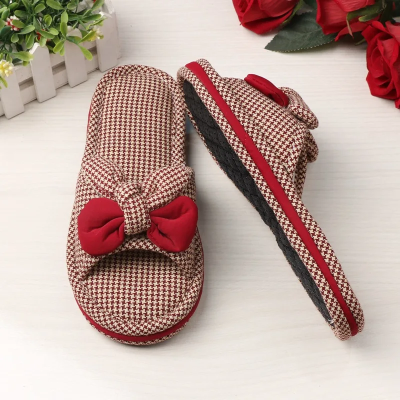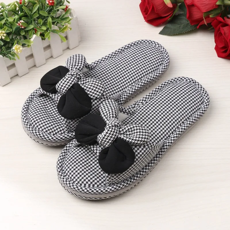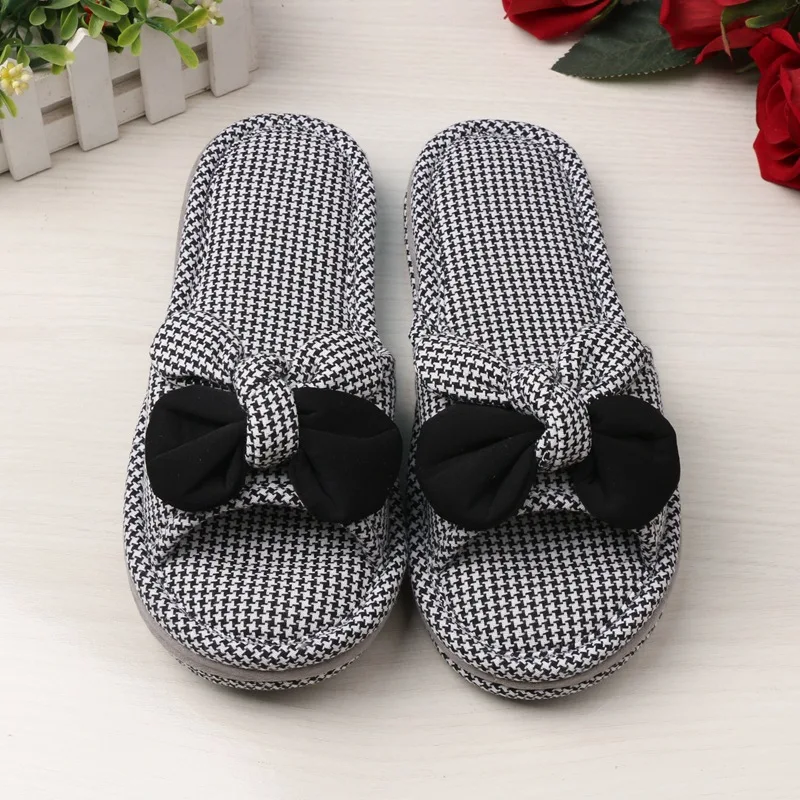 • Wholesale Autumn And Winter Thickened Cotton Fabric Home Bow Slippers Soft Sole Silent Female Bedroom Bow Slippers