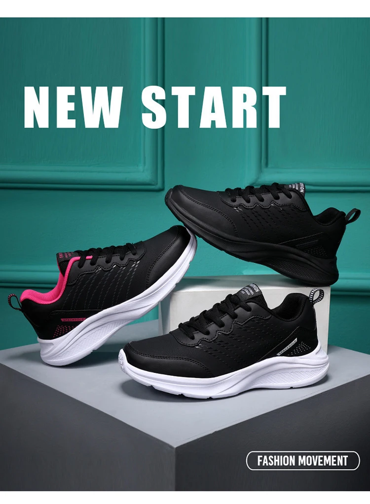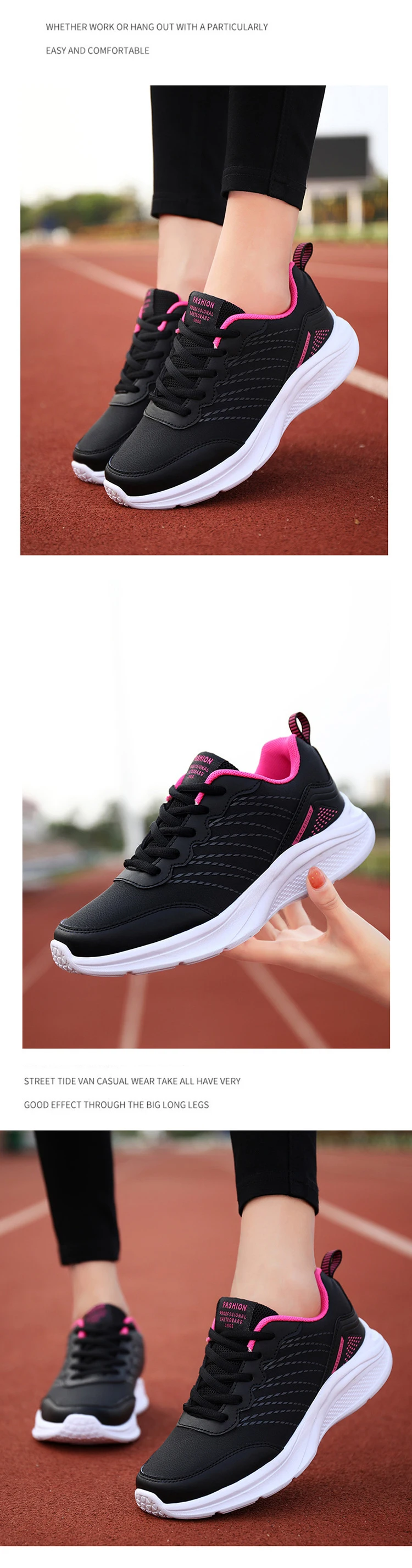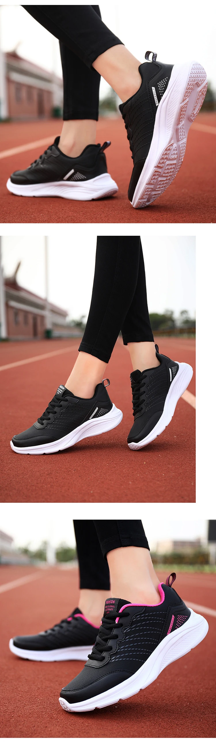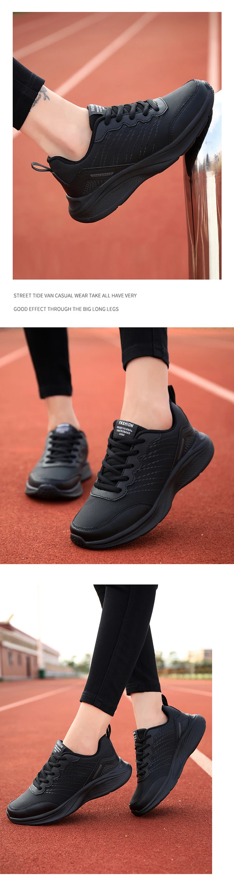 Wholesale Fashion Light MD Sole Leather Women Casual Sports Shoes Spring All Match Casual Women' s Black Sneakers Shoes