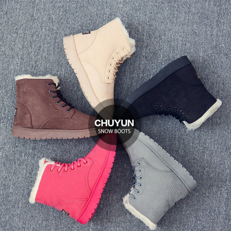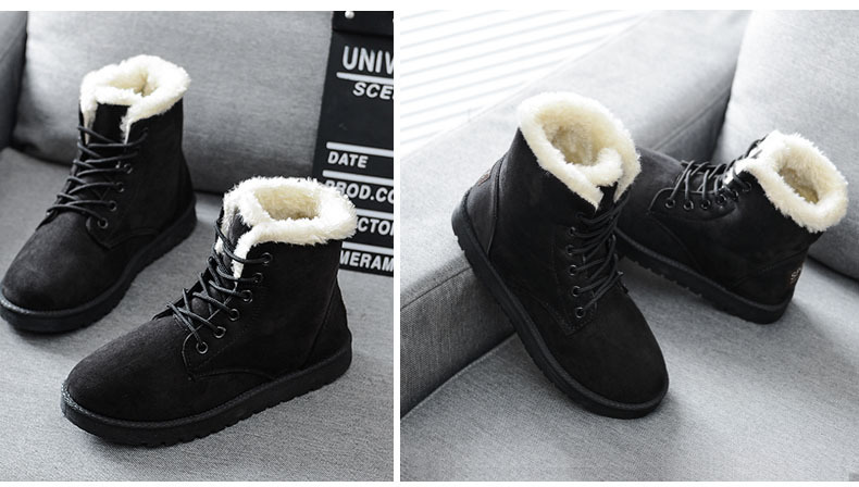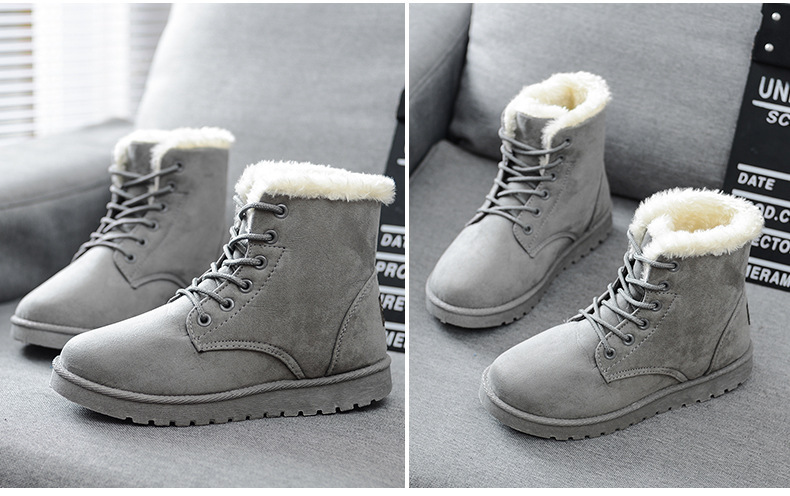 Wholesale Women's Winter Thermal Flat Ankle Boots Women's Soft And Comfortable Snow Shoes With Lace-up Design