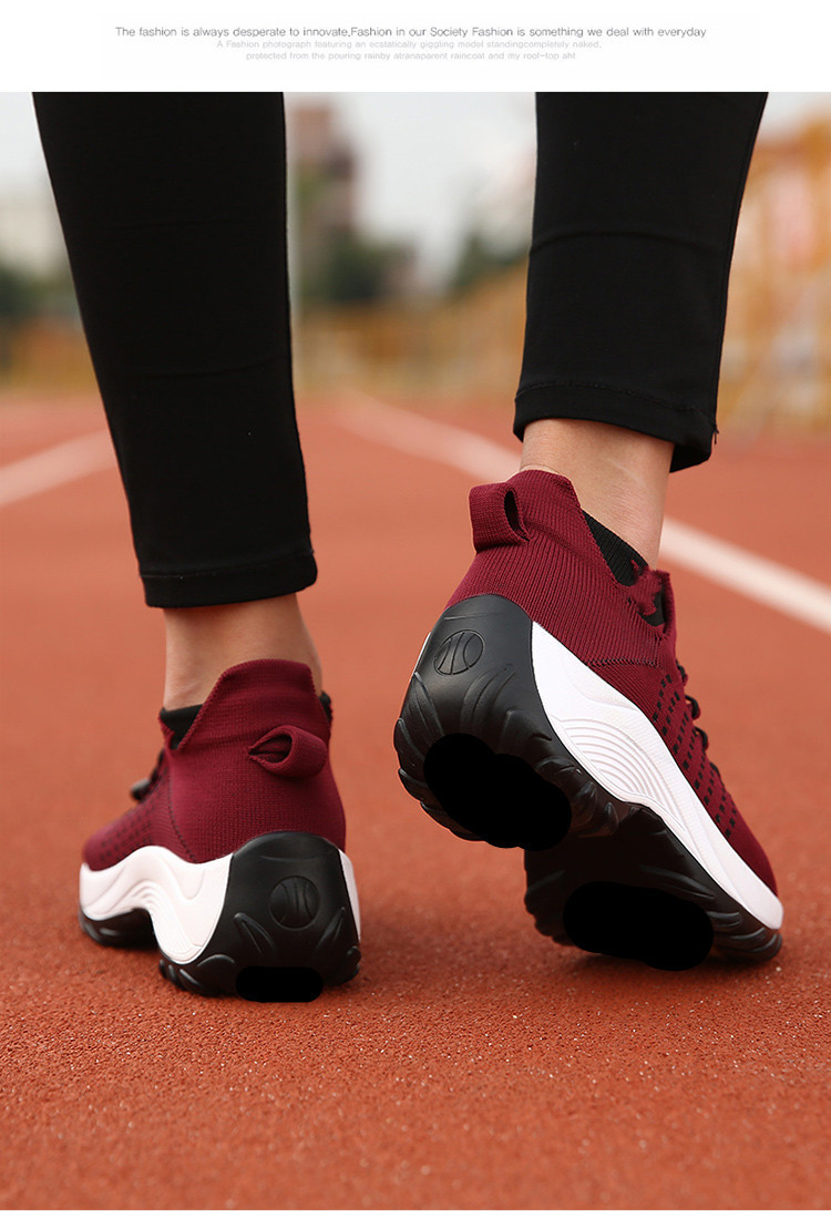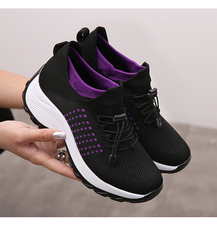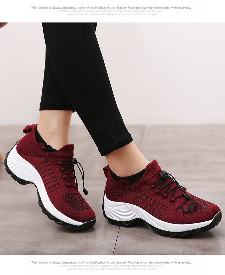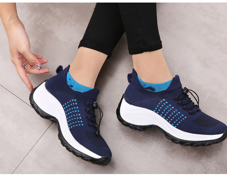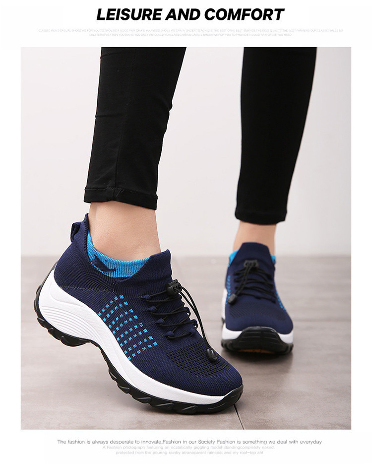 Wholesales Sock Design Platform Stretching Lock Lace Breathable Lightweight Women's Knitted Casual Shoes
