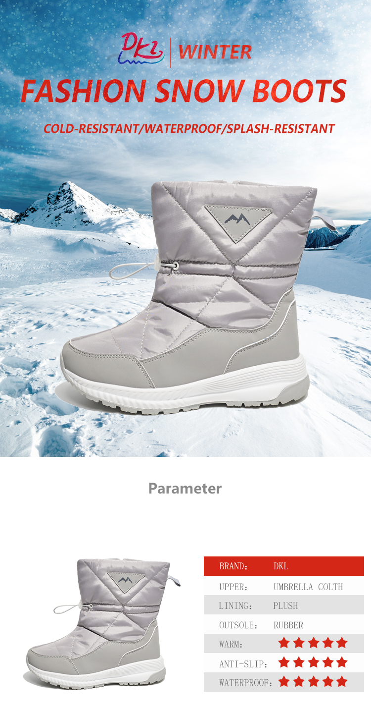 Winter Anti slip thickened plush women's snow boots winter grey warm insulation casual women's snow boots
